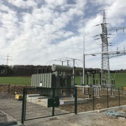 Da der Einspeisepunkt für den Windpark Gerichtstetten ein Strommast der 110 KV – Leitung in Waldstetten ist muss an dieser Stelle ein Umspannwerk errichtet werden. Dort wird der ankommende Windstrom auf die 110 KV Spannungsebene transformiert.