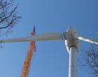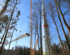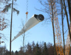 Wie gut vorbereitet die einzelnen Arbeitsschritte sind, und mit welcher Professionalität das 30-köpfige Team auf der Baustelle zu Werke geht, lässt sich anschließend beobachten. Kaum lässt der Wind nach, hebt sich das riesige Rotorblatt sanft in die Luft . Nach wenigen Minuten ist der „Flügel“ fast am Ziel, am sogenannten Blattadapter. Sobald das Rotorblatt die gewünschte Position erreicht hat ist enormes Fingerspitzengefühl gefragt. Mehrere Monteure sorgen in schwindelerregender Höhe dafür, dass das riesige Bauteil seinen Platz findet und an der Gondel befestigt werden kann.